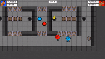 A fun couch vs game where each player is trying to collect as many eggs as they can before the timer runs out. Avoid traps, knock eggs off your enemies' heads, and play in a variety of different stages. Snatch up as many yolks as you can or else they'll grow up to become chicken nuggets!